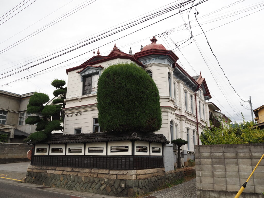 さらに進んでゆくと、同じく大正時代に建てられたという上條医院。さきほどの2棟とはまた異なる、和洋折衷の独特な面持ち。縦長の窓や壁の装飾、そこに重厚感を与える瓦屋根の対比が印象的。
