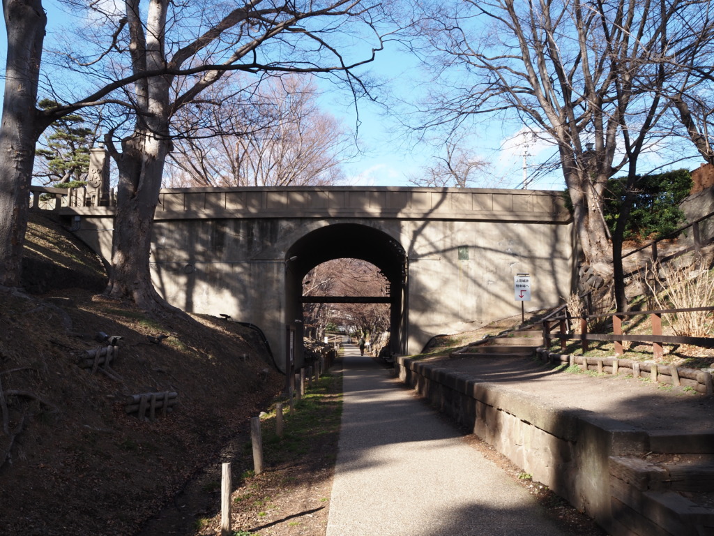 目の前の横断歩道を渡れば、いよいよ上田城跡公園へ。歴史を感じさせる重厚な橋が跨ぐのは、かつての堀跡。ここから先は、旧上田城の二の丸へと入ります。