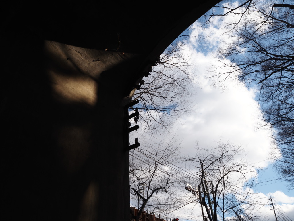 二の丸橋からの登城ルートからは想像できなかった、この高低差。東虎口櫓門や西櫓からの展望で南側が開けているのは解っていても、こうして目の当たりにするとあらためてこの地が天然の要害であることが判るよう。