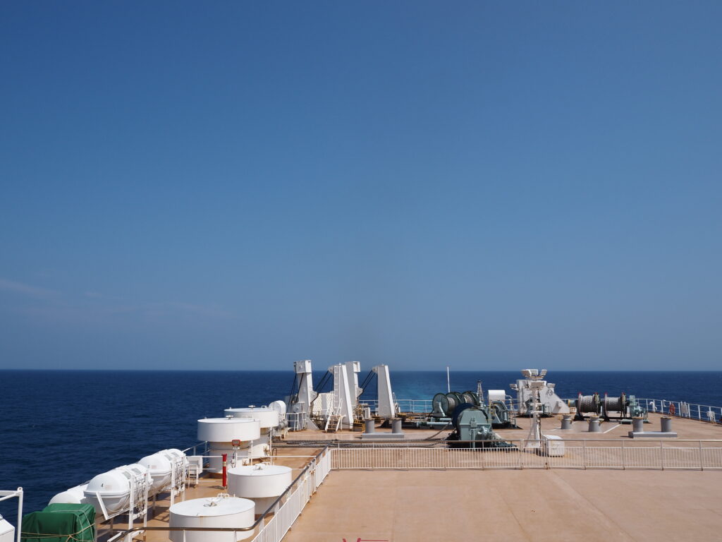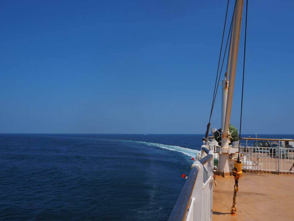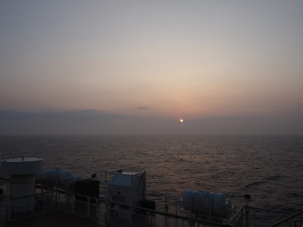 神々しい。この厳かな情景をことばにするには、僕にはあまりにも語彙力がなさすぎる。洋上で、朝日の放つ力を浴びる。こんな一瞬一瞬の感動の積み重ねこそが、また次、そのまた次と僕を船旅へと誘うのだろう。