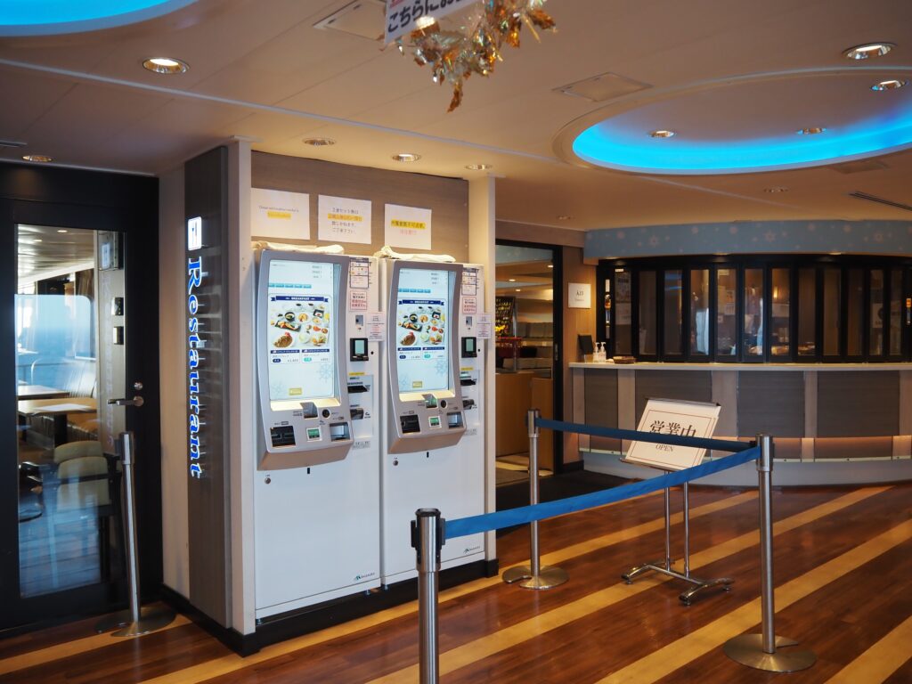 ゆったりと海に揺られつつ微睡んでいると、朝食営業開始の船内放送が。朝ごはんにとパンは買っておいたものの、そろそろちゃんとしたごはんも恋しくなってきたのでレストランを利用することに。