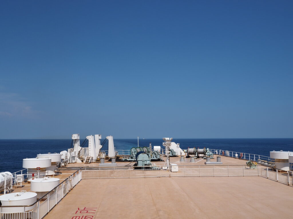 青い海原を愛でつつの昼食を終え、自室で噛みしめる残された時間。14時着か。あと少しだな。そう思いつつうとうとしていると、船長より大洗入港が1時間ほど早まるとの放送が。