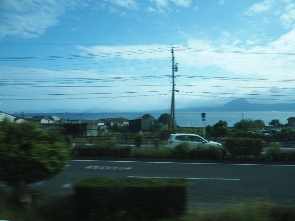 思った以上に山深さを感じさせる道のりを抜ければ、ぱっと視界が開け車窓いっぱいに広がる別府湾。お猿で有名な高崎山が海へと張り出し、その奥には県都大分の街並みが。