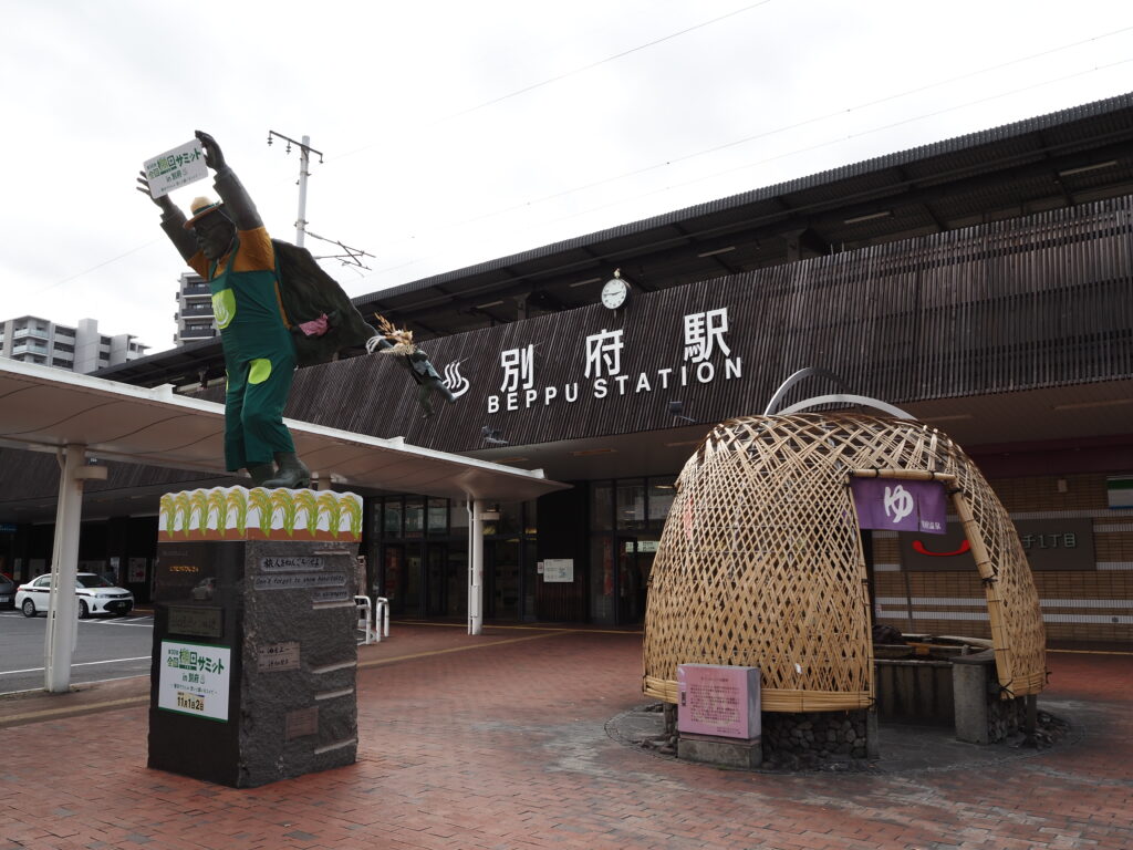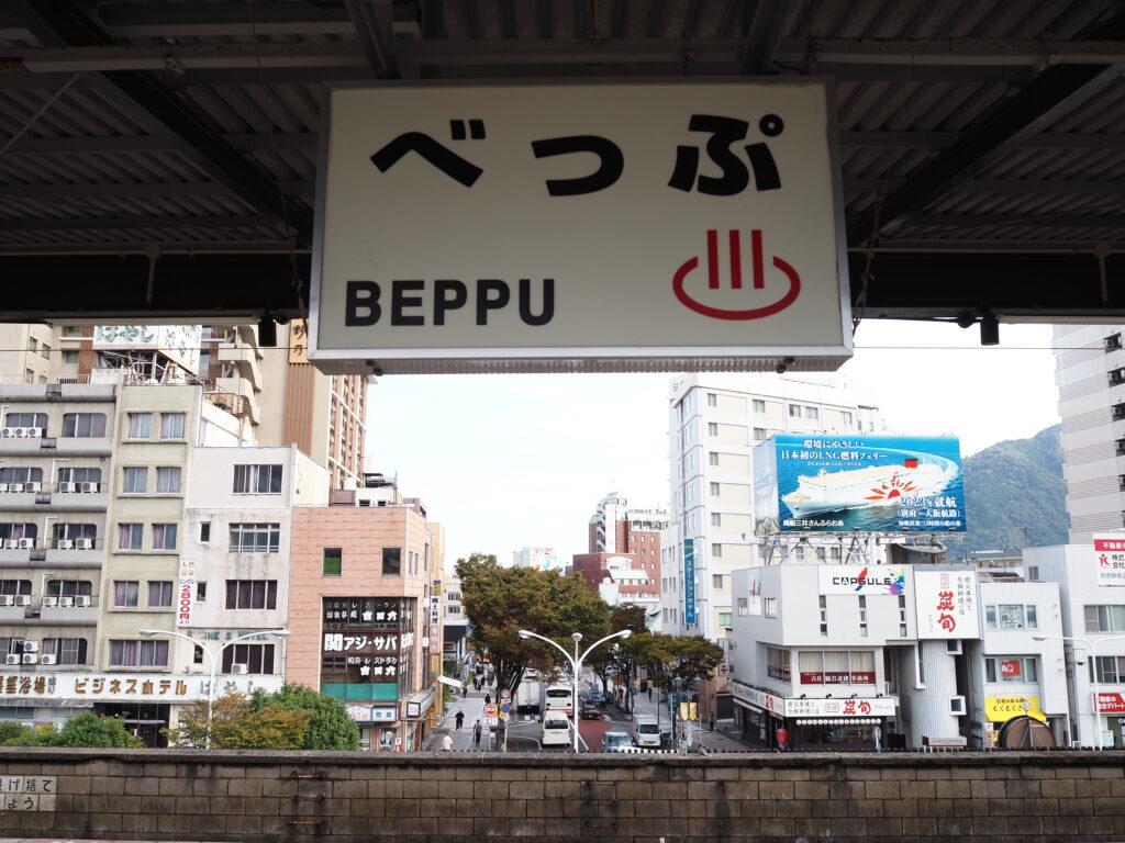 山から海へと移ろう車窓を眺めること1時間足らず、温泉地としてあまりに有名な別府に到着。ホーム上から望む駅前は、あのときの雰囲気のまま。12年ぶりの再訪に、干支ひと廻りかと思わず感慨にふけってしまう。