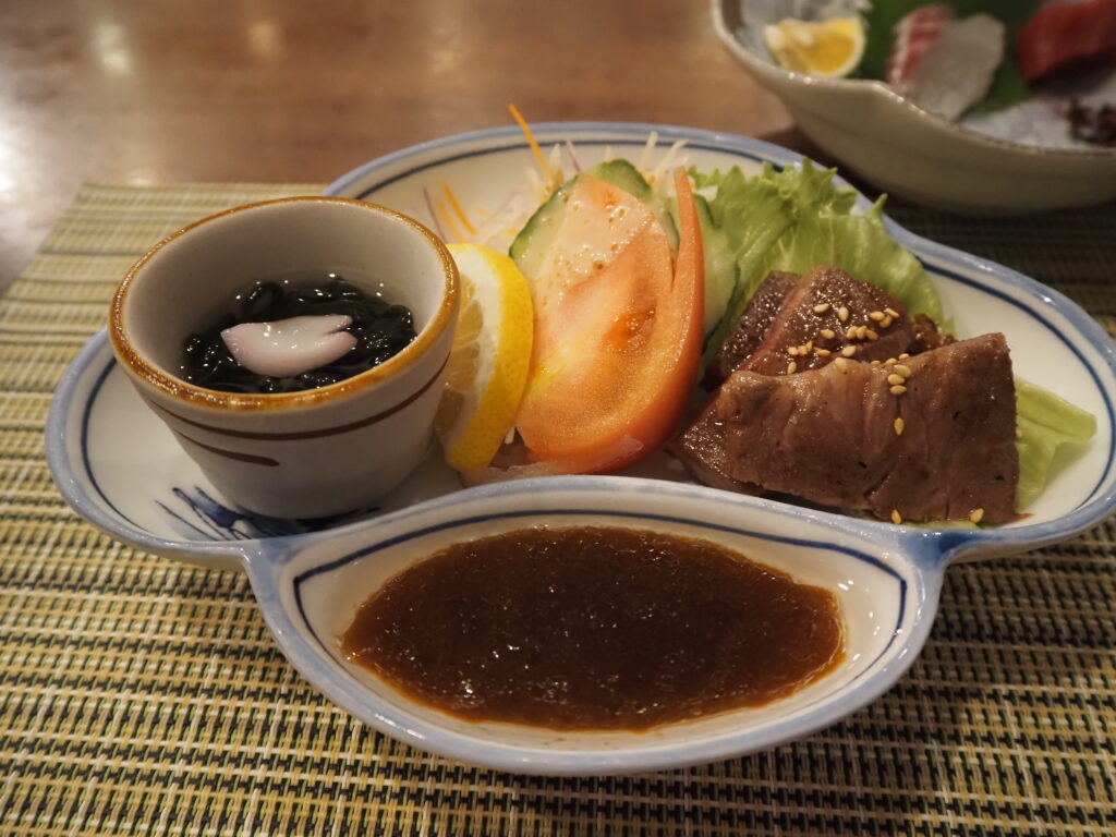いやぁ、どれもおいしいものばかりだわ。そううれしく箸を進めていると、焼き立て熱々のミニステーキが。好みの焼き加減を聞いてくれ、ほどよい酸味のソースがお肉の脂と赤身の旨味を引きたてる。そしてじわりと感動したのが、添えられたサラダ。パリッと瑞々しく、久しぶりにおいしい生野菜を食べたかも。