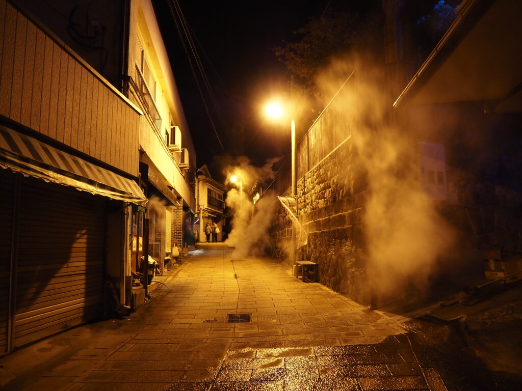 12年ぶりとなる別府鉄輪、前回は明るいうちに散策しただけなので今回は夜に歩こうと心に決めていた。そう意気込み宿を出れば、街の表情はより一層濃いものに。