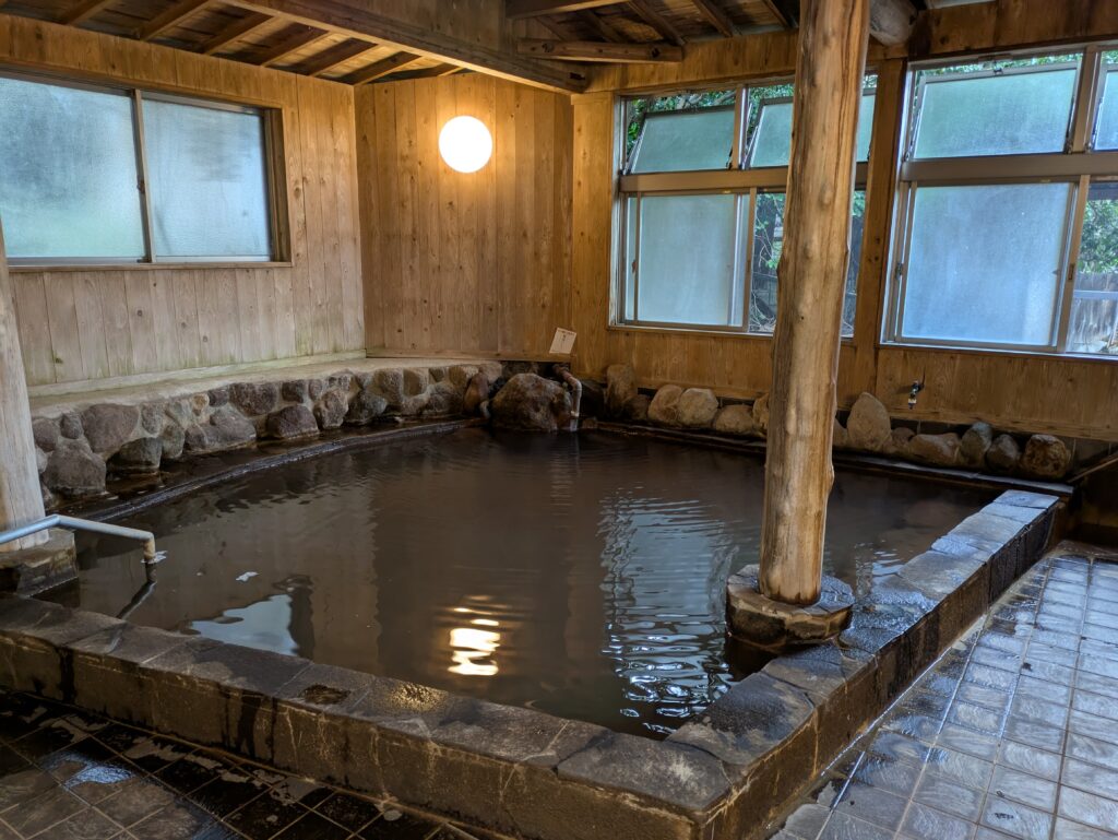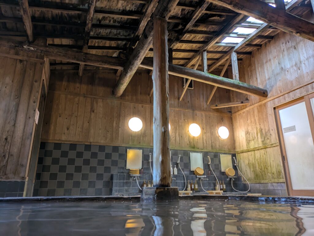 というのも内湯がすっかり気に入ってしまい、最初の一浴以外露天へは行かなかったから。太い柱や梁に支えられた高い天井、その木の渋い空間に佇む広い岩風呂。そこにかけ流される源泉はまろやかで、するりと穏やかな浴感ながら芯からじんわりしっかりと温めてくれる。