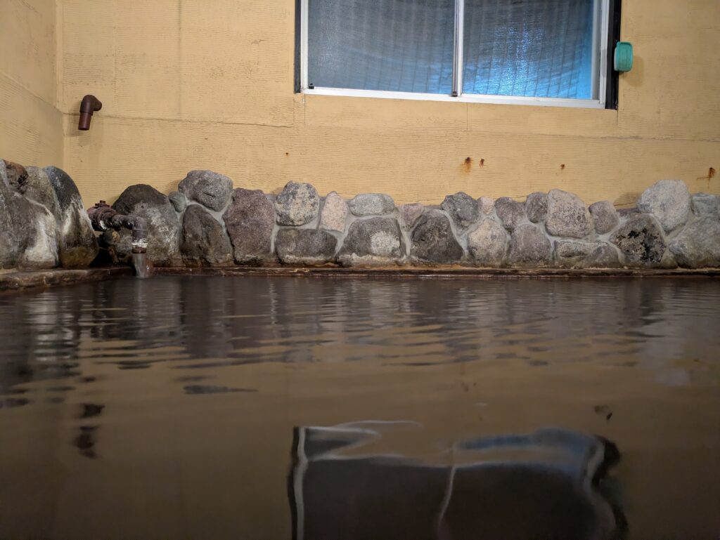 そしてこちらが露天風呂。換水清掃後だったのか浅かったためちょっとだけ入り内湯へ移動しましたが、どうやらもうひとつ岩風呂の湯船があったみたい。このときはまったく気づかなかった。