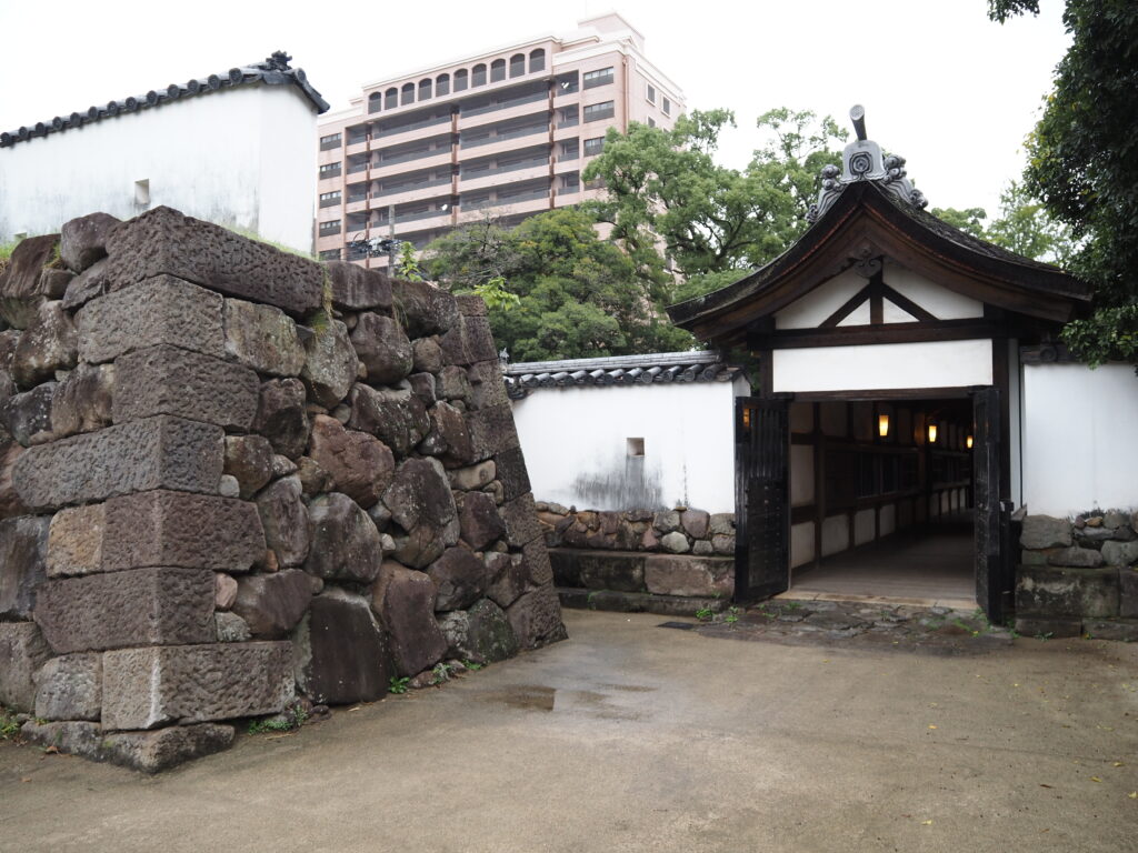 本丸、東之丸、西之丸以外の建物は明治時代に壊され、遺された建物も空襲によりほぼ焼失してしまったという府内城。そんななか、土塀の中央に建つ宗門櫓は藩政時代を知る貴重な生き証人。