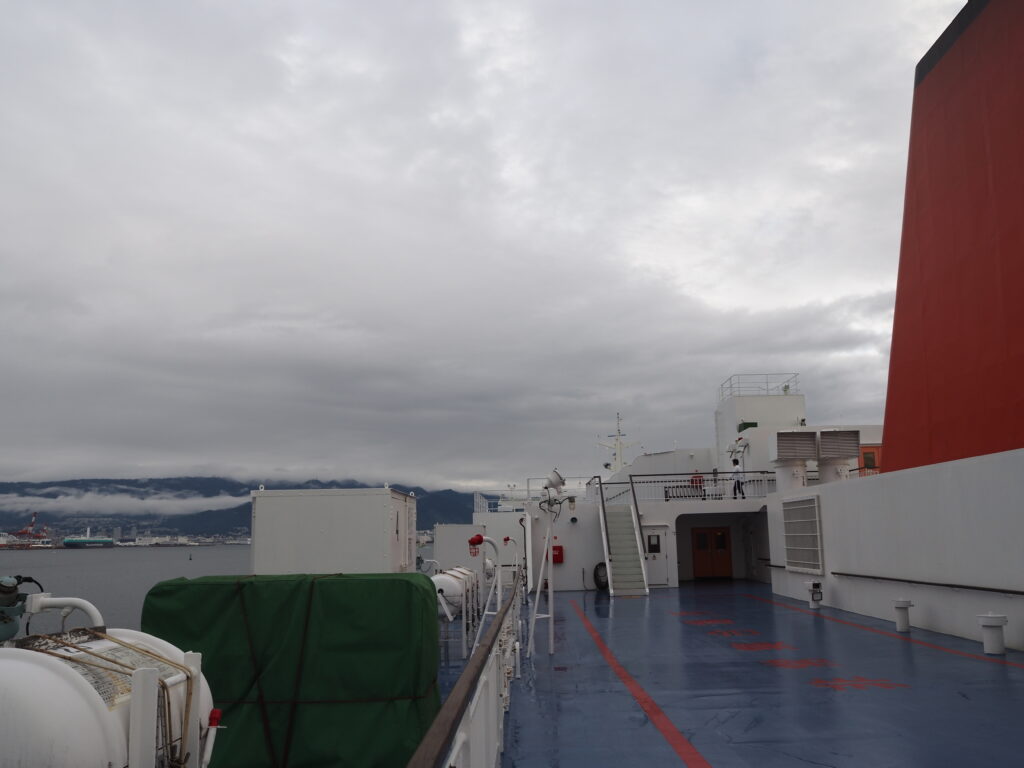 あぁ、本当に終わってしまうんだな。充実した善き時間を過ごしたからこそ襲い来る、避けることのできないやりきれなさ。それすら込みで、夜行、そして船旅の魅力だと僕は思う。今回も、本当に最高の船旅だった。そんな万感の思いを胸に抱く僕を乗せた船は、音もなく神戸六甲港に無事接岸。