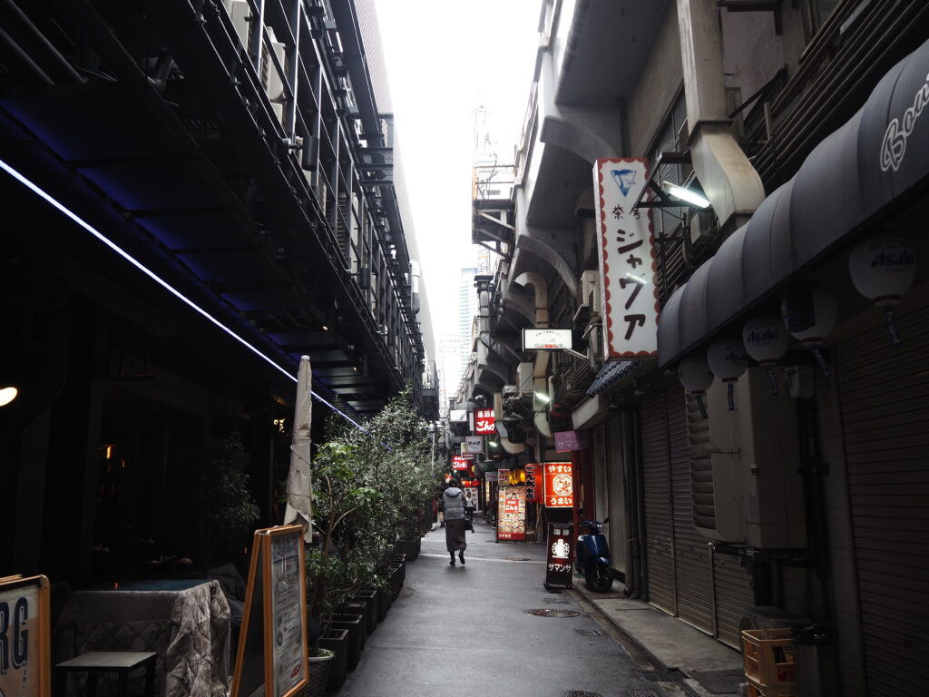 16年ぶりにあらためてこうして訪れてみると、前回以上に濃さを感じる街だった。阪急とJRの高架に挟まれたこの横丁も、夜にはきっと誘うような妖しい情緒を漂わせることだろう。