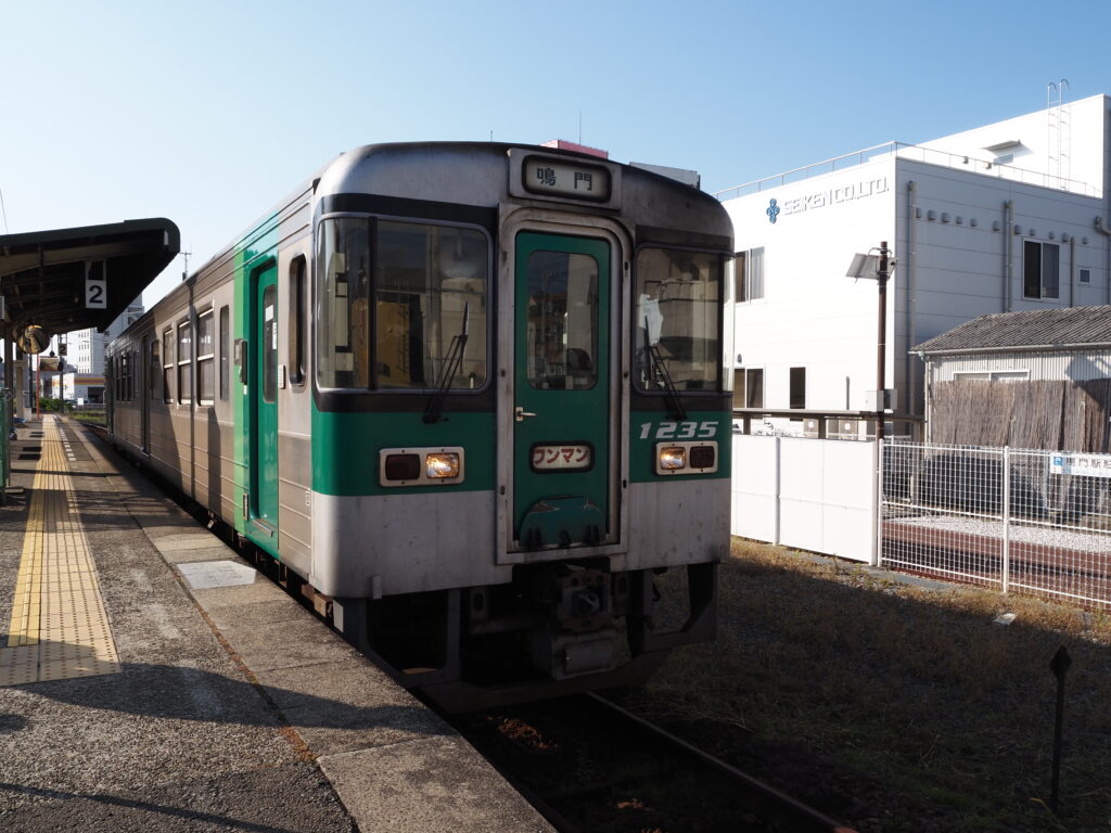 家と田園の交じる長閑な風景のなか、最高速度85㎞/hとのんびり走る単行列車。もともとは阿波電気軌道、のちの阿波鉄道により開通した鳴門線。このゆったりとした雰囲気が、ローカル線らしくてここち良い。