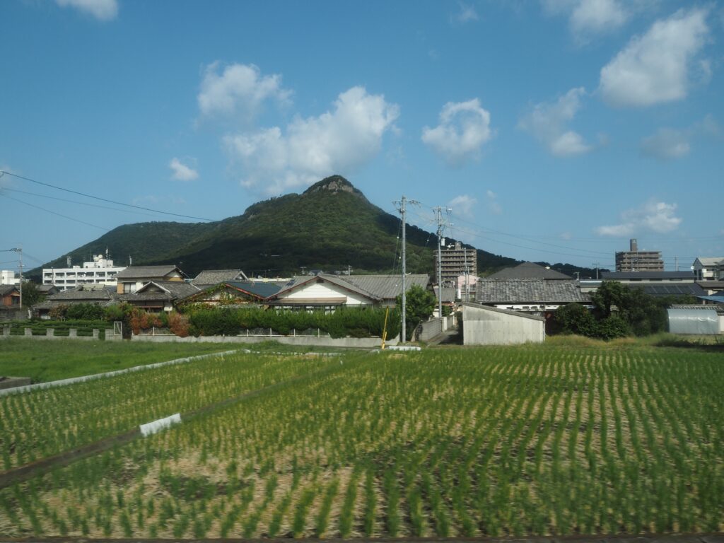 10月下旬初めての高徳線特急うずしお車窓には独特な形状をした屋島が見えてくる