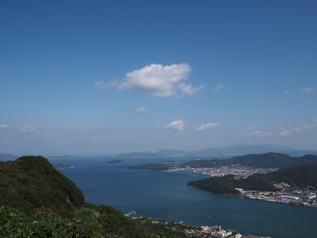 10月下旬初めての屋島北嶺の先端に位置する展望台遊鶴亭で浴びる鮮烈な青さに染まる瀬戸内海の多島美