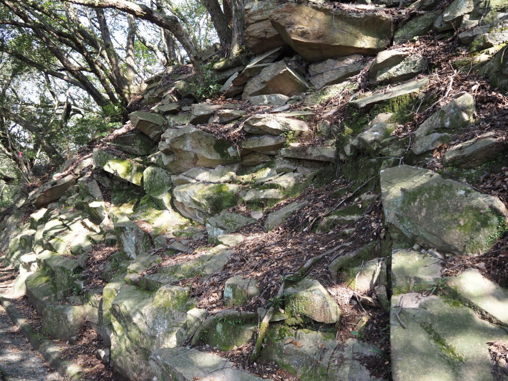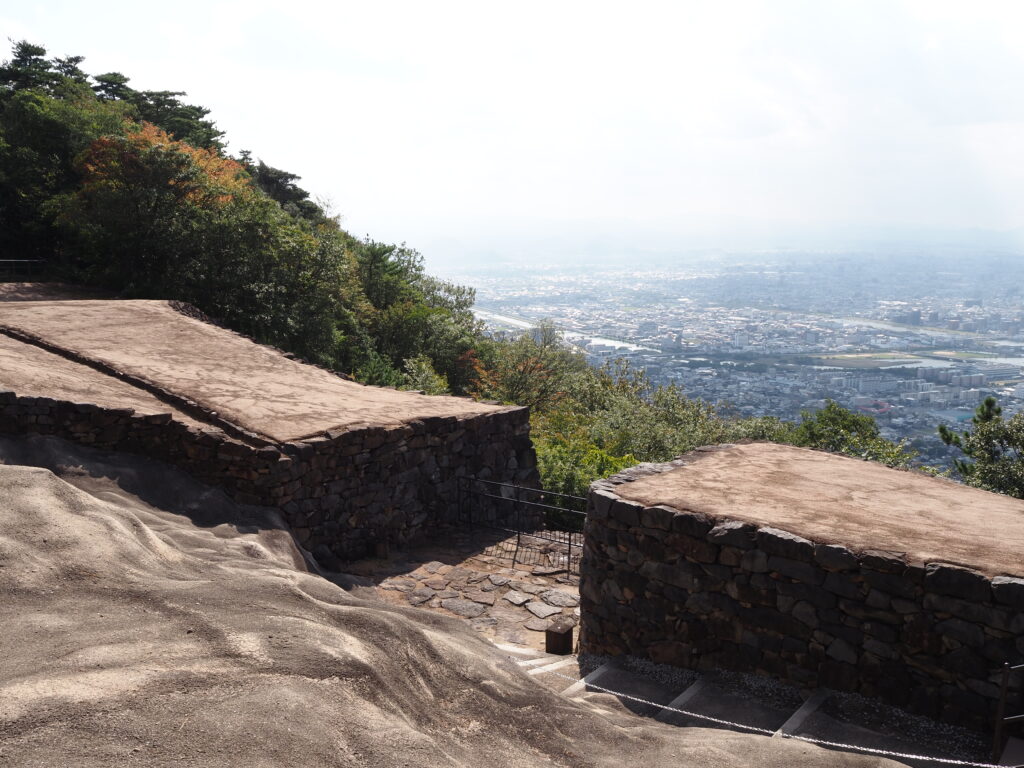 帰りのバスまでまだもう少し時間があったため、南側に位置する城門跡へ。屋島には奈良時代に築かれたという古代山城があったそうで、その石垣が復元されています。
