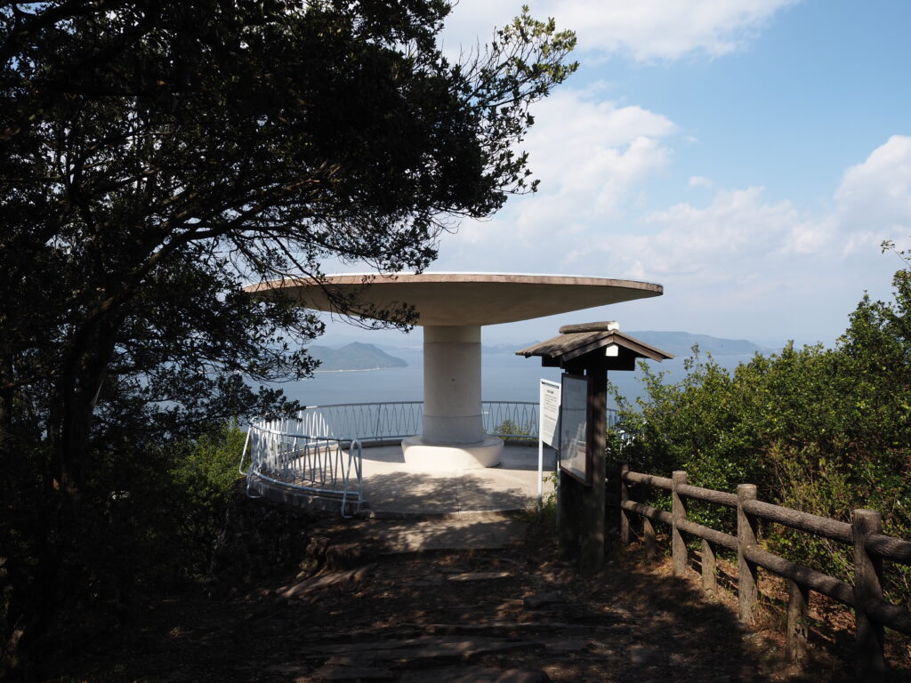 駐車場から約2.5㎞、途中絶景を愉しみつつ歩くこと30分ちょっとで屋島山上の最北端である遊鶴亭に到着。すでにこの位置からでも、その先に広がる展望が感じられる。