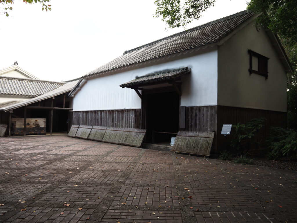 残る建物もあと数棟。名残を惜しみつつ歩いてゆくと、坂の途中に立派な土蔵が。明治後期に建てられたという前田家土蔵は、高知県の中央に位置する布師田という場所にあったもの。特産の土佐漆喰により塗り固められ、壁を傷めないようにと水切りのために廻らされた瓦庇が特徴的。