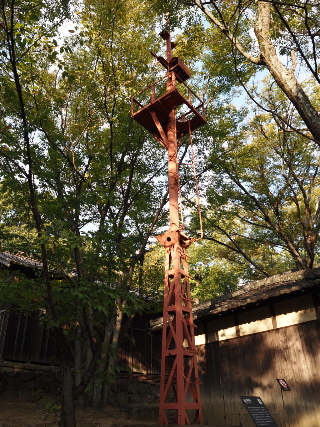 その隣に建つ独特な形をした警鐘台は、香川の旧志度町で使われていたもの。終戦の年に神戸で建造され、疎開していた志度湾で沈没した護衛空母しまね丸。終戦後の引き上げ解体に伴い地元の有志がもらい受け、消防団で使用されたそう。