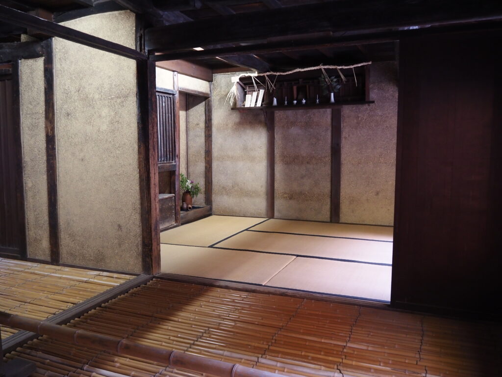 玄関の上がり口は竹のすのこ張りの床となっており、海から上がり濡れた着物や道具のしずくを落としやすくするという漁師らしい工夫も。