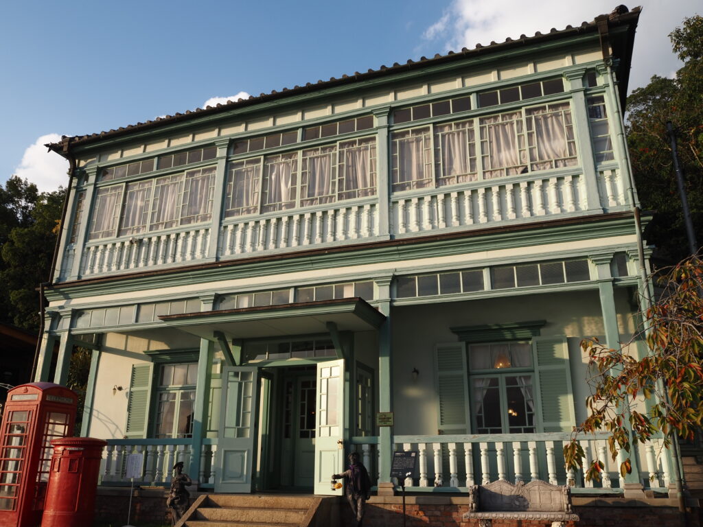 時代や用途の異なるさまざまな建物に圧倒され、気づけばもう西日に染まる時間に。四国や対岸の瀬戸内にまつわる建築美を存分に浴び、その最後を彩るのは北野異人館街から移築されたうつくしい洋館。