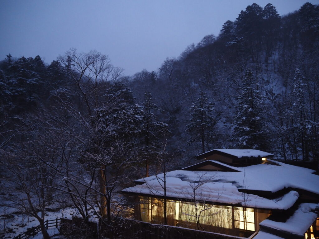 静かで深く豊かな時間は粉雪のように風に乗り、どこかへとふっと去ってしまった。愉しい時間とは、儚きもの。山の湯宿には夜の闇が忍び寄り、まもなくそれがモノクロームという色彩すら奪ってゆく。
