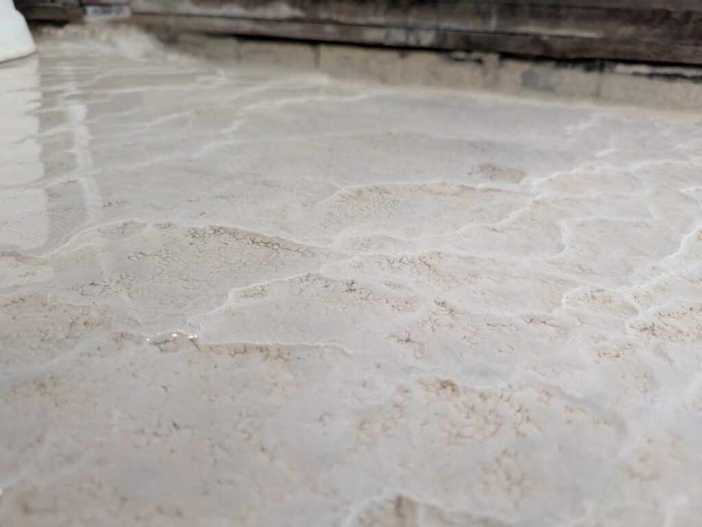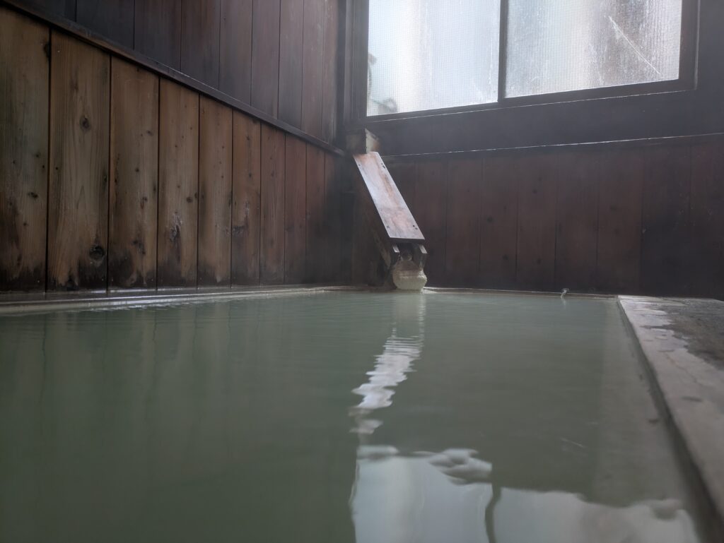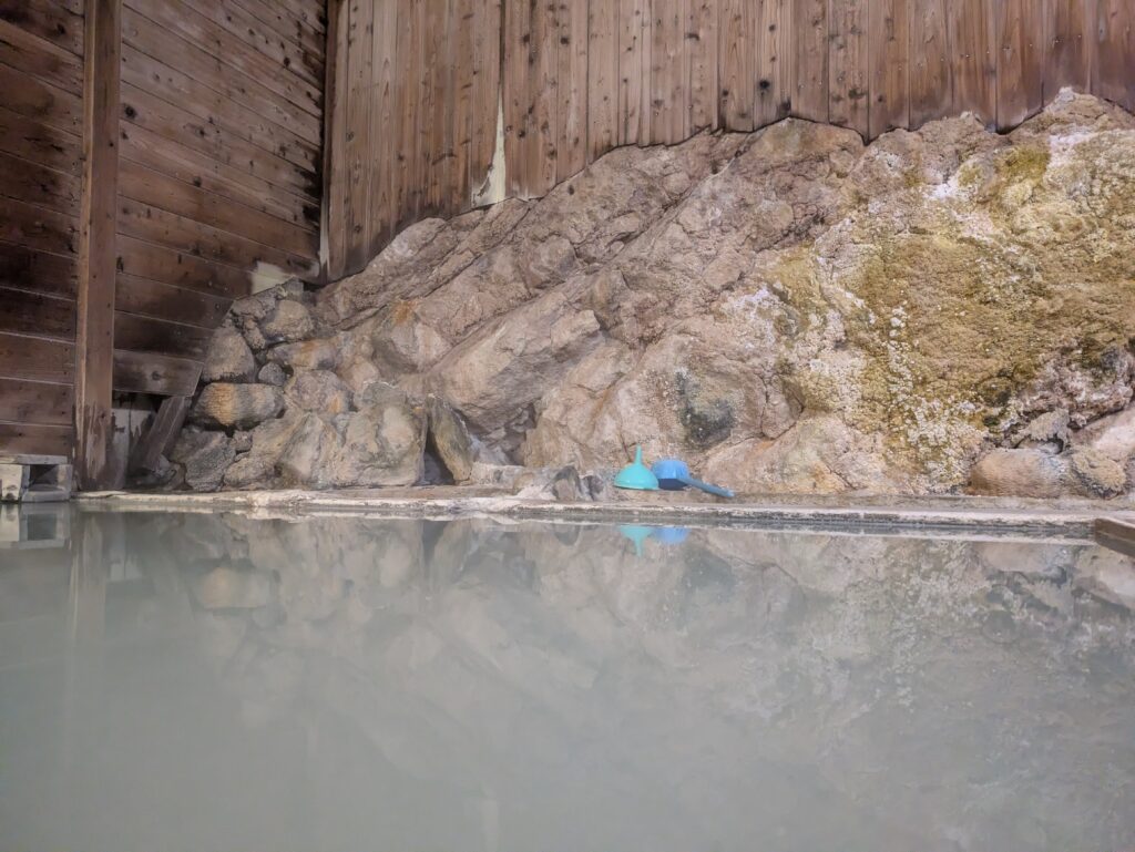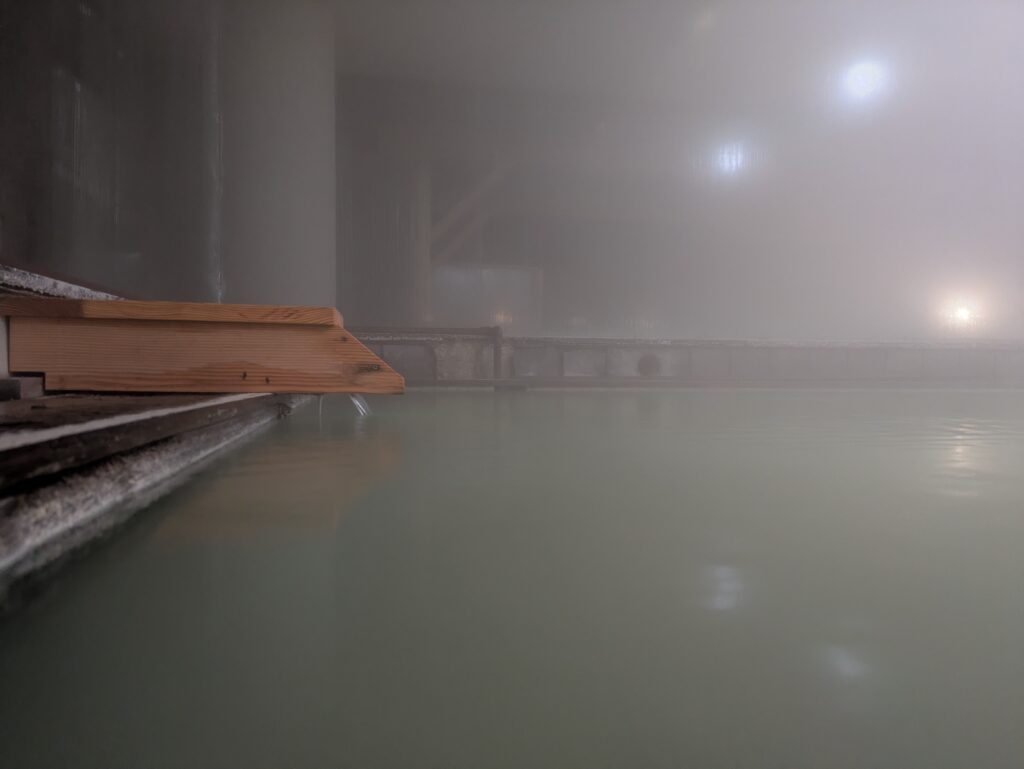 今日一日、足の向くまま気の向くまま。連泊の悦びを噛みしめつつ湯船へと近づけば、湯面一面にうっすらと張った薄い膜。成分の濃さが伝わる光景に、さらに嬉しくなってしまう。