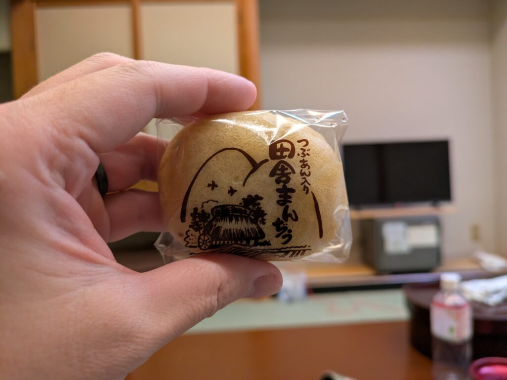 そんな静かな宴を一層味わい深いものにしてくれるのが、今井屋の田舎まんぢう。部屋の注文票に書いてあり気になっていたので、連泊のお茶菓子として渡されたときには思わず小躍りしてしまった。