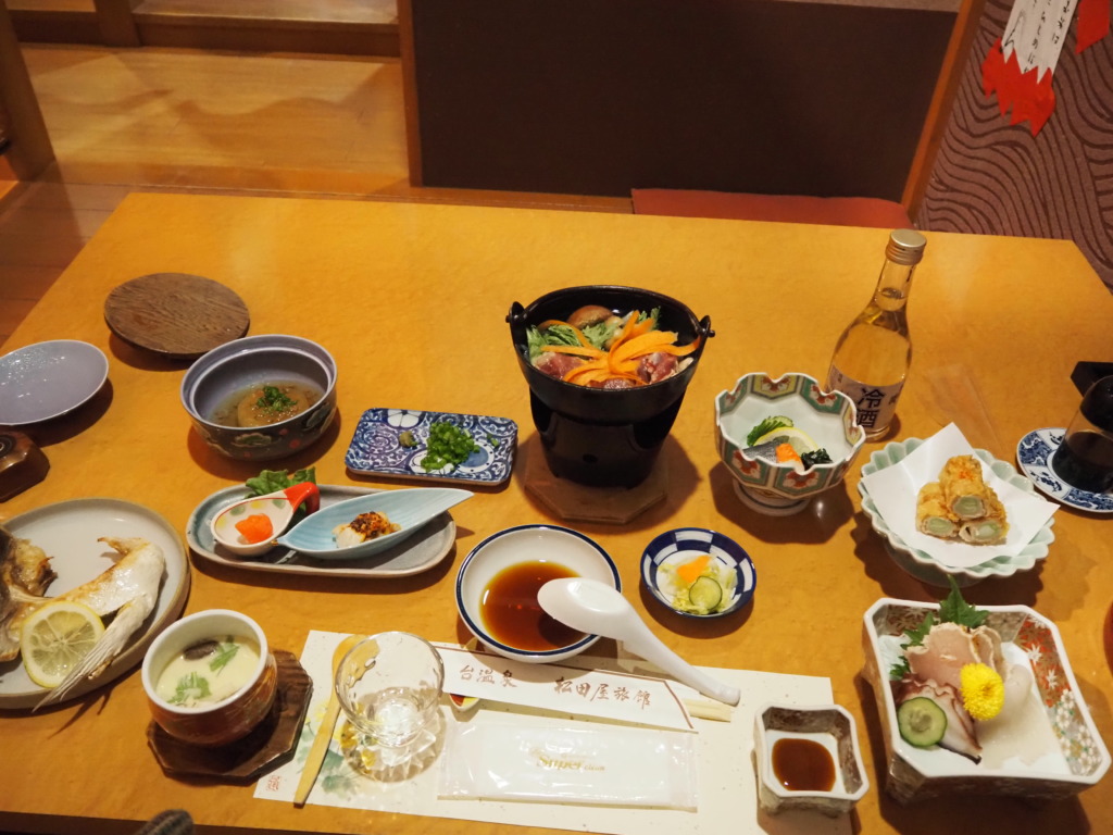 こうブログに記してみると、浸かって食べて飲んでだらけるだけ。一見ただそれだけしかしていないように見えるのに、実はその怠惰な時間のもつ密度というものは計り知れない。あっという間に愉しい時は過ぎゆき、もう2晩目の宴の時間が。