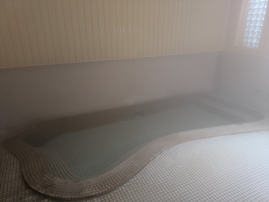 ようやく苦しくなくなったところで、ふたたびお湯へ。三者三様、いずれも甲乙つけがたい魅惑の浴場。どれにしようかとちょっとばかり逡巡しつつ、別館の万寿の湯へと向かうことに。