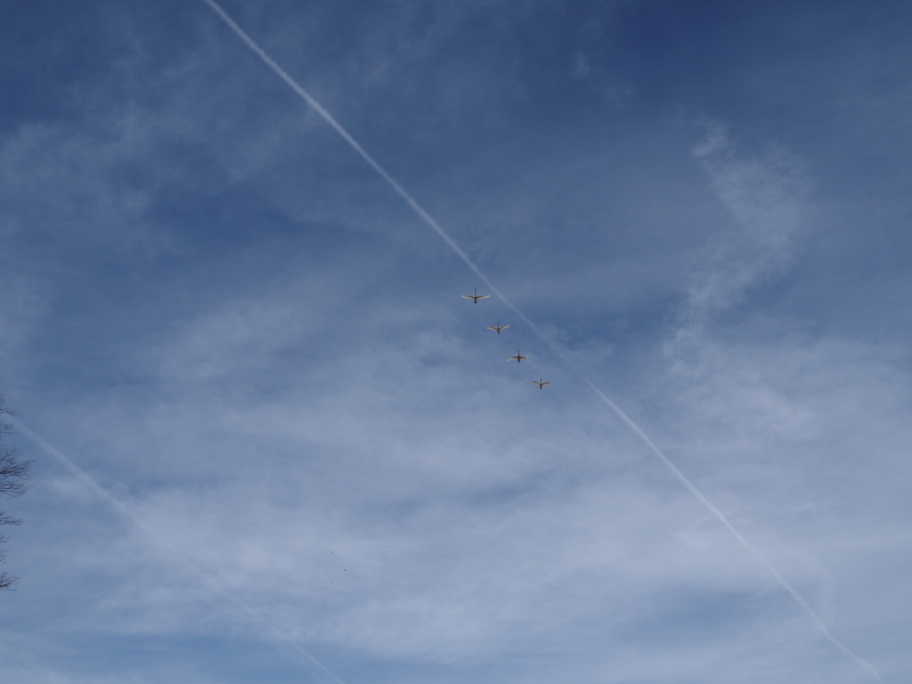芝生の枯色を染める薄い雪、冬の冷たさを映す薄氷。かつての繁栄の跡に、諸行無常ということばを浮かべ歩く道。すると上空から、なんとも懐かしさを覚える鳴き声が。あ、と思い空を仰げば、優雅に飛んでゆく4羽の白鳥。そのあまりのうつくしさに、思わず言葉も失い見送るばかり。