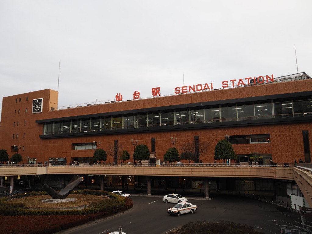 普通列車を3本乗り継ぎのんびり南下すること2時間14分、この旅最後の目的地である仙台に到着。一ノ関の売店とここでお土産を買い込み、東京に帰る仕度をします。